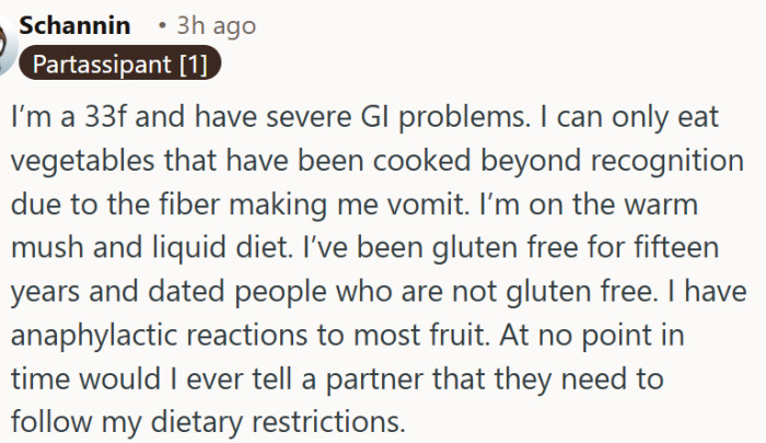 This is similar to the AITA where someone insisted on cooking despite their partner’s dietary restrictions.