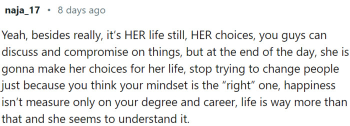 This situation illustrates the complexities of ambition within relationships. Understanding how individual backgrounds influence motivation can lead to more compassionate conversations about career aspirations.