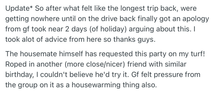 That’s when the argument turns from the party plan itself to what happened before they even moved forward, namely the boyfriend’s claim that her behavior made his life miserable.