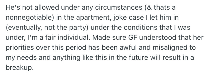 Now the boyfriend is acting like the party is a threat to his peace, and he’s ready to draw a hard line.
