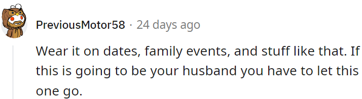She insisted on wearing it proudly despite her reservations due to its significance. He did offer to exchange it, but OP stood firm.