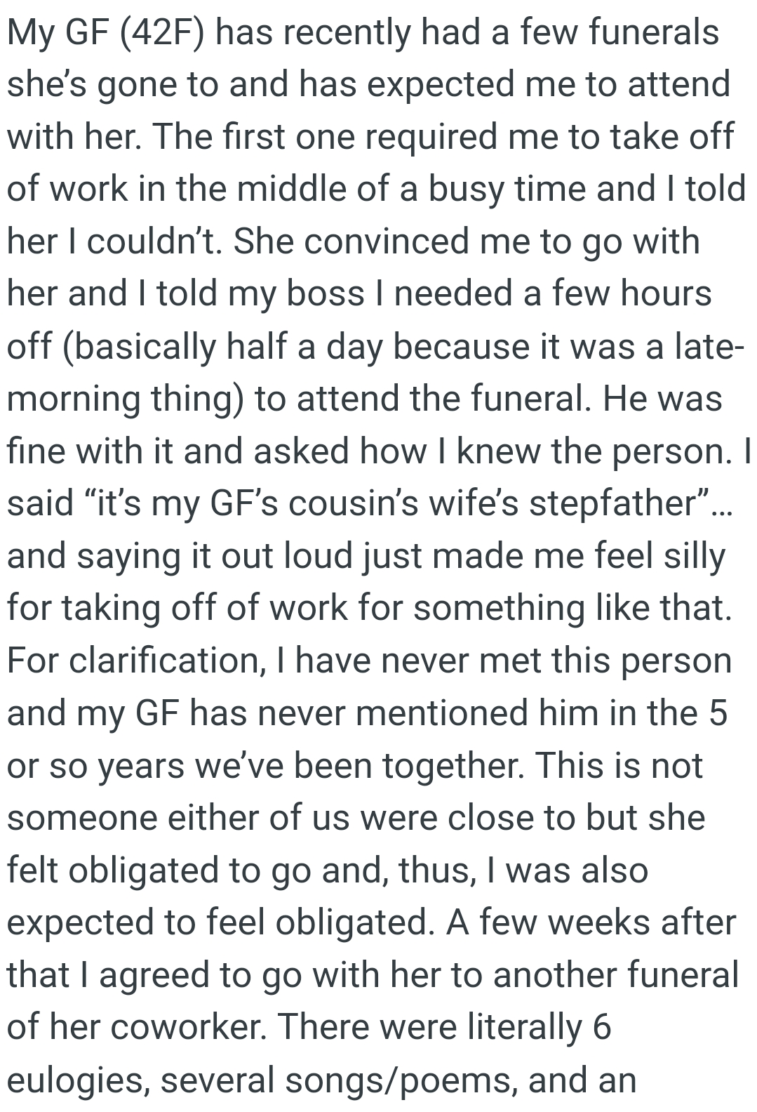 Redditors Descend On Man Who Expresses His Hate For Funerals And Why He Doesn't Want To Attend One With His GF