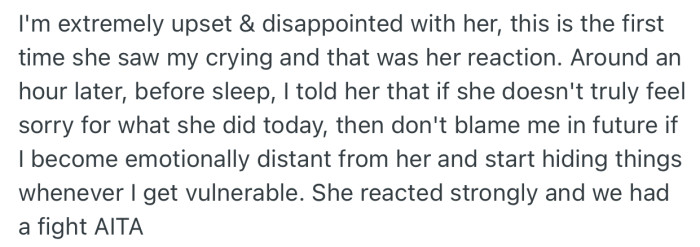 Once he realized she thought vulnerability meant weakness, he started questioning whether he could ever be “safe” with her again.