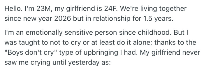 A 28-year-old woman mocked her boyfriend for crying at the end of an emotional TV show, and now he’s stuck replaying that moment like it’s a red flag blinking on repeat. It wasn’t just “aww, it’s a sad scene,” it was her reaction that turned his feelings into something he suddenly felt embarrassed about. Then she laughed, made it seem ridiculous, and basically treated his vulnerability like a joke. That’s what made it complicated, because it wasn’t about the plot, it was about what her behavior said about how safe he really feels with her.