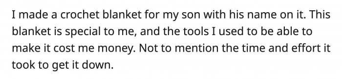 This time, the girlfriend went too far when she discarded a blanket. OP spent months crocheting a blanket for her son that has his name on it.