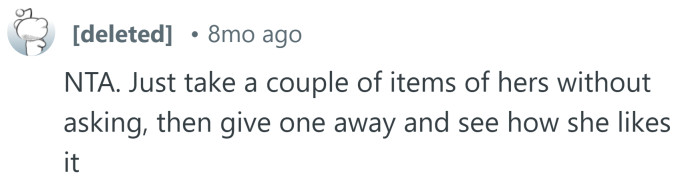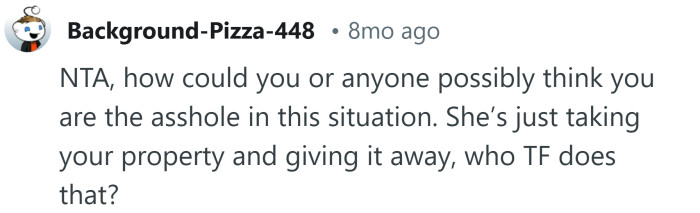 "The girlfriend reportedly told the OP that it was “hers” and that she could do whatever she wanted with it."