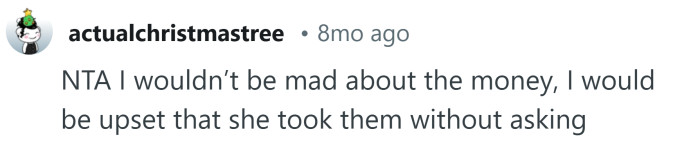 Now, the OP is questioning whether he crossed a line by calling her actions disrespectful. He turned to Reddit to ask if he was the problem, or if his feelings about consent and spending were actually justified.