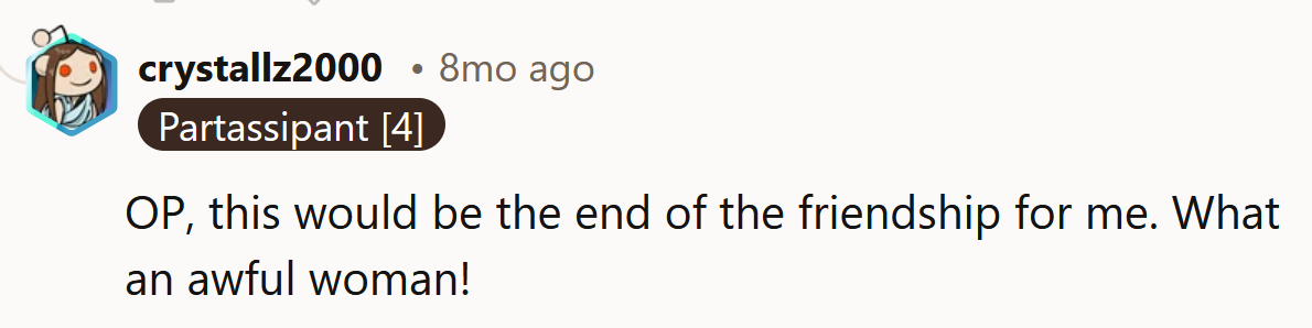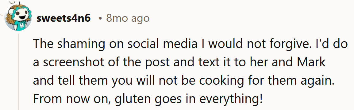 Not long after that, the OP saw Gertrude had been making nasty comments about them on social media. She called the OP a "stupid a**hole" for ruining her dinner.