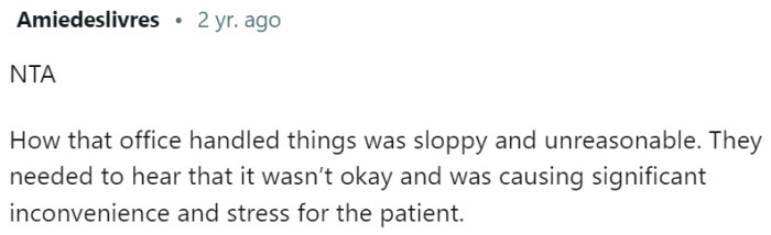 OP's stance was totally justified. Let's get real here. The way the doctor's office handled this whole thing wasn't right.