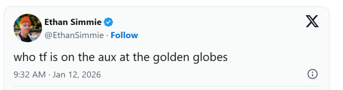 "Who tf is on the aux at the Golden Globes,"