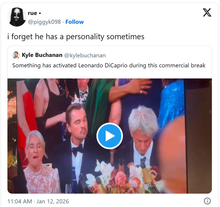 One unscripted moment involving Leonardo DiCaprio quickly took on a life of its own online. During a commercial break, cameras caught him appearing visibly animated about something off-screen, and viewers wasted no time turning it into a viral clip.
