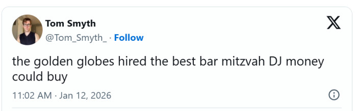 "The Golden Globes hired the best bar mitzvah DJ money could buy,"