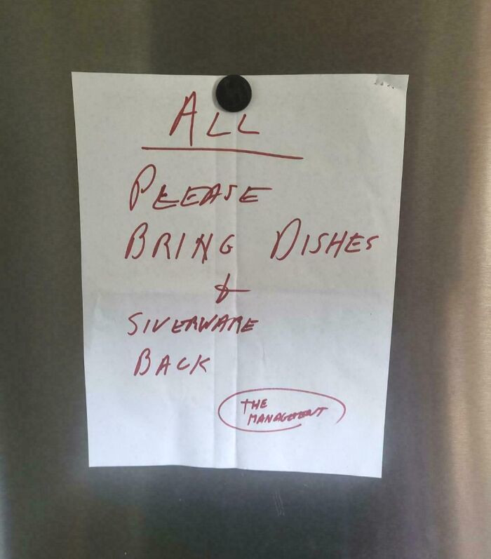 "My Dad's Request, Posted On Fridge. The Management Means Business"