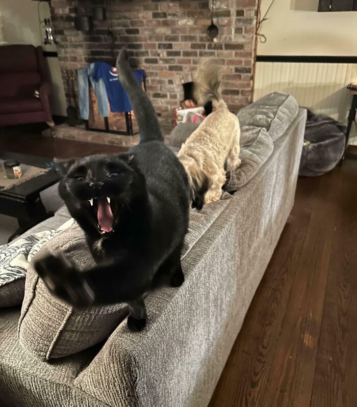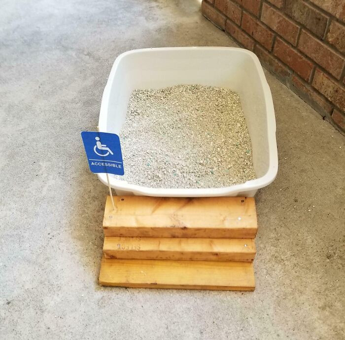"My Parents' Cat Got Hurt, So My Dad Made Him Some Steps For His Litter Box"