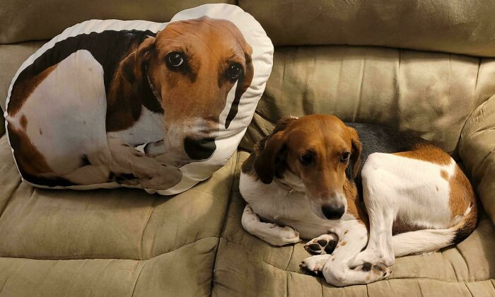 "My Dog And The Pillow With Her Picture My Parents Got Me To Take To College"