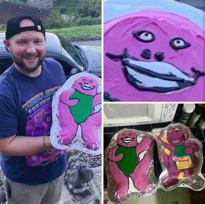 "My Dad Made Me A Homemade Barney Cake. I’m 34. Masterpiece Or Fail?"