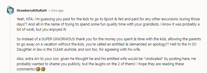 To provide a broader perspective on this sensitive family issue, we have gathered responses from others who have read this story. These comments reflect a range of opinions on whether the grandmother was right or wrong in her decision to take her grandchildren to Epcot without consulting their parents.