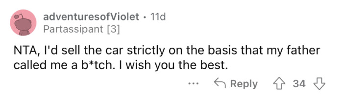 "I'd sell the car strictly on the basis that my father called me a b***h."