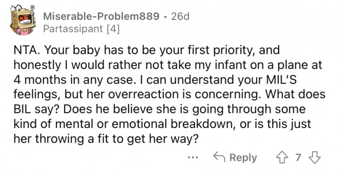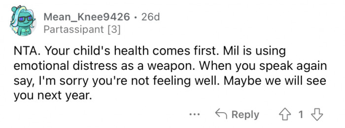 The trip was already going to be difficult for the new parents, and they felt it was important to keep their baby on her shot schedule. Well, when they called to let OP's MIL know that they wouldn't be able to visit for Christmas after all, she became hysterical!