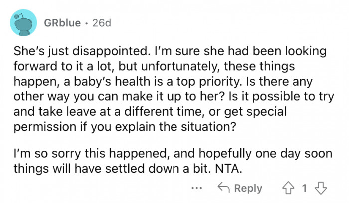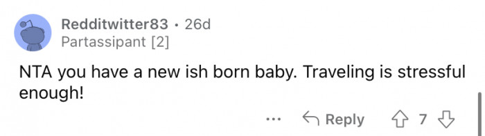 The Reddit user explained that she and her husband live in a different state than either of their families. So, when the original poster (OP) gave birth to their daughter in August, she did so in her home state to have the support of her family around her when the baby arrived.
