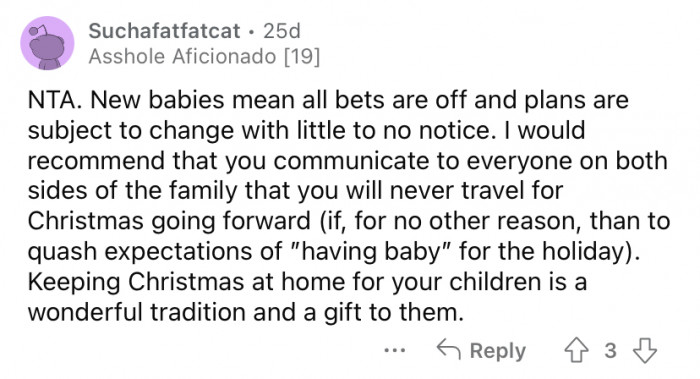 Three days after their baby was born, OP's MIL instructed them that Christmas would be her turn with the baby. The Redditor says she tried to see things from her MIL's perspective and agreed that they would travel to spend Christmas with them this year.