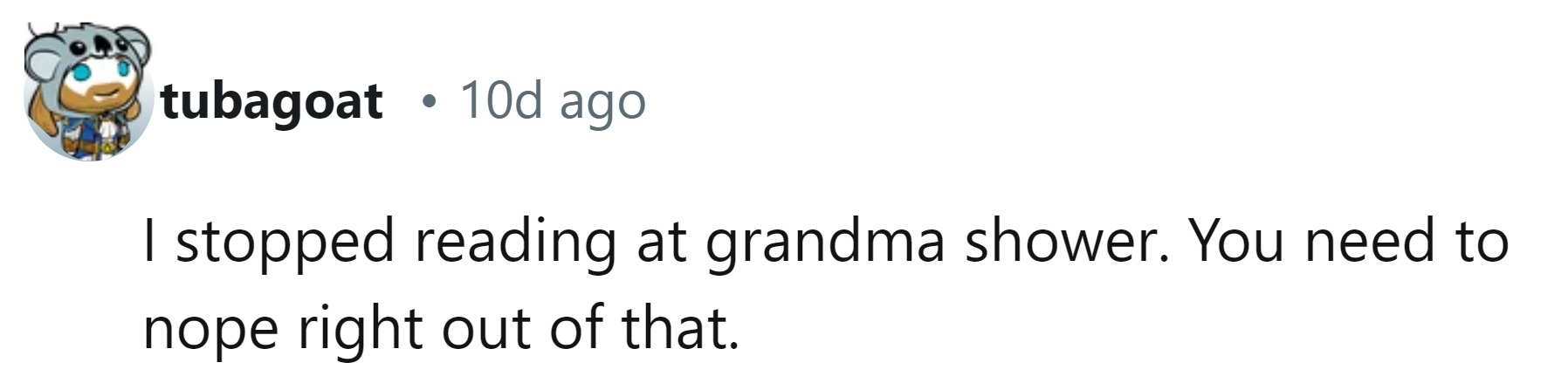 "I stopped reading at 'grandma shower.'"