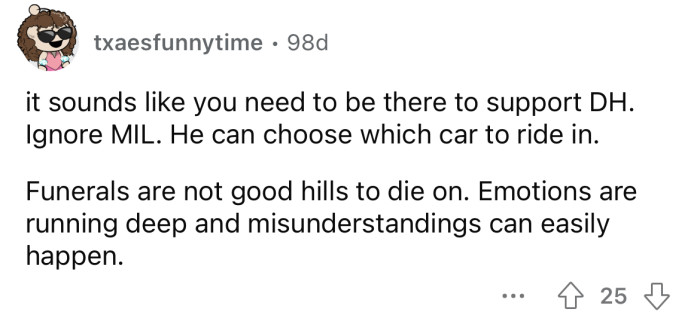 Redditor Asks For Advice On How To Handle Her Difficult MIL At Her Husband's Grandmother's Funeral