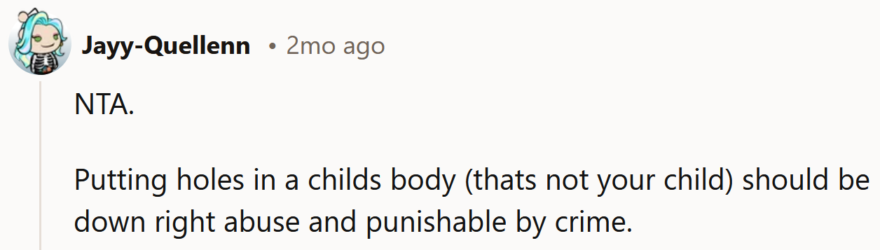 They insisted that there was no harm in the baby having her ears pierced. However, the OP told them they wouldn't be changing their minds.