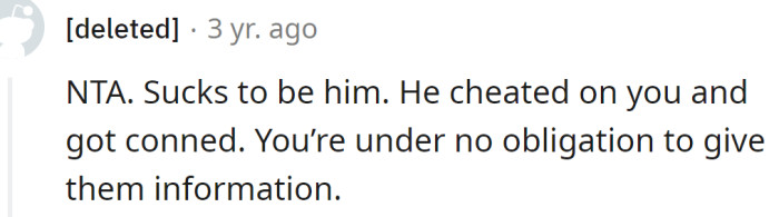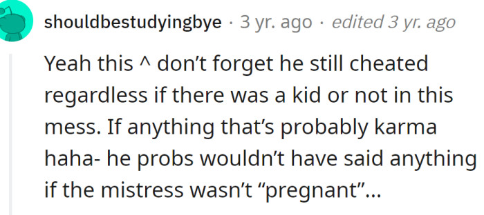 "Don’t forget he still cheated regardless if there was a kid or not"