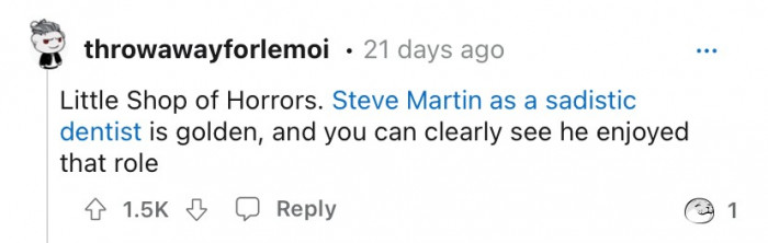 "Steve Martin as a sadistic dentist is golden."