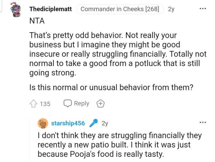 Redditor Calls Out Greedy Neighbor Who Attempted To Take Home A Lion's-Share Of The Food During Their Potluck Party
