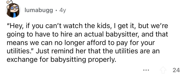 Not only that, but when she is supposed to be babysitting, the MIL often leaves the kids to their own devices and stays in the bedroom on her phone. She uses the OP's WiFi for her dating apps, and the kids are left to fend for themselves. Understandably, the OP is fed up with her MIL's behavior, but her husband says they should give his mom more of a chance.