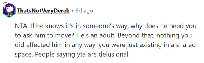 Hi. I feel like I’m in the right here, but I’ve been diagnosed with autism and there have been social situations in the past where I’ve come to realize that I was indeed, TA, so I want to get some feedback and make sure my feelings are aligned.Today I was grabbing a few things at the grocery store. A man was standing with his cart blocking the aisle. I was able to squeeze through by lifting my basket over my head and carefully sidestepping past the cart.I grabbed the item I wanted from the aisle and went past the same way, since I needed to get to the checkout. I did the same thing. I lifted my basket over my head and squeezed through the tight space left between the cart and shelves.The man wheeled around and yelled at me. He said “You could just say ‘excuse me!’ I’d move it if you asked.” I said okay and left to the checkout.It’s true I could have said something, but I feel like I shouldn’t have to ask permission to a fellow shopper to access a grocery aisle. I didn’t want to wait for him to move it if I could squeeze past with my basket. I also assumed that if he had been concerned enough to move the cart for other shoppers in the first place, that he wouldn’t have been standing with his cart blocking the aisle. There was plenty of space to move the cart to in a way that would have provided more room. I thought that if he had cared enough to move, he would have done it preemptively.I honestly burst into tears when I got home. It’s been a long week haha, and I’m on my period. I really do feel like I didn’t do anything wrong and he was probably just looking for an excuse to yell at someone, but my mind is so scrambled and my hormones are so low that I’m just wondering if I really am in the wrong.AITA?Edit: this post has only been up for like, a hot minute but everyone from the NTAs to the YTAs and the ESHs have been helpful and I want to thank you. It’s helped me with my perspective on things.I’ve come to believe that probably both I and the man both could have done better and did our best at the same time. I was stressed out by my own life stuff and that’s why I didn’t say excuse me, and he probably has his own life stuff that caused him to lack spatial awareness and snap in that moment.One commenter mentioned the autism and a funny thing about that is that while I was diagnosed by one doctor, the doctor after him thoroughly disagreed and thought he was stupid. So considering that I have been diagnosed as autistic by one and non-autistic by another, I think that probably means that I am half autist. Like one of those half dragonkins from a fantasy novel.Here's how the Reddit community reacted.