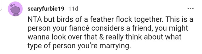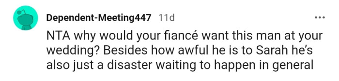 It's also surprising to everyone that OP's fiancé feels the need to associate with his "best friend" despite the vile things he has done over the years. This has prompted some commenters to advise OP against going ahead with the wedding.