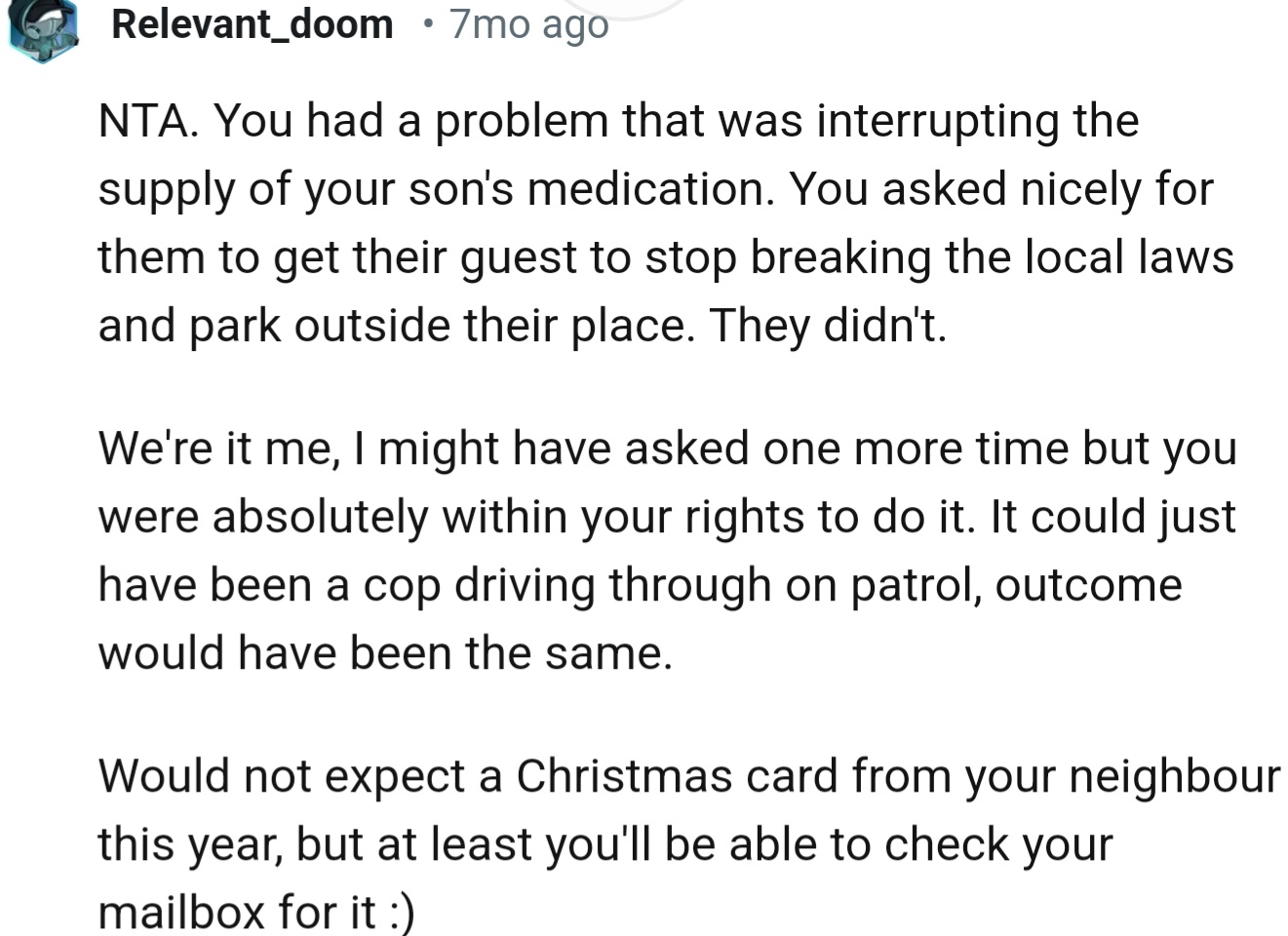 In the end, OP felt vindicated after the outpouring of support from the Reddit community. After all, they did everything by the book and only resorted to calling the police after exhausting all polite options.