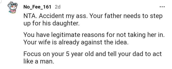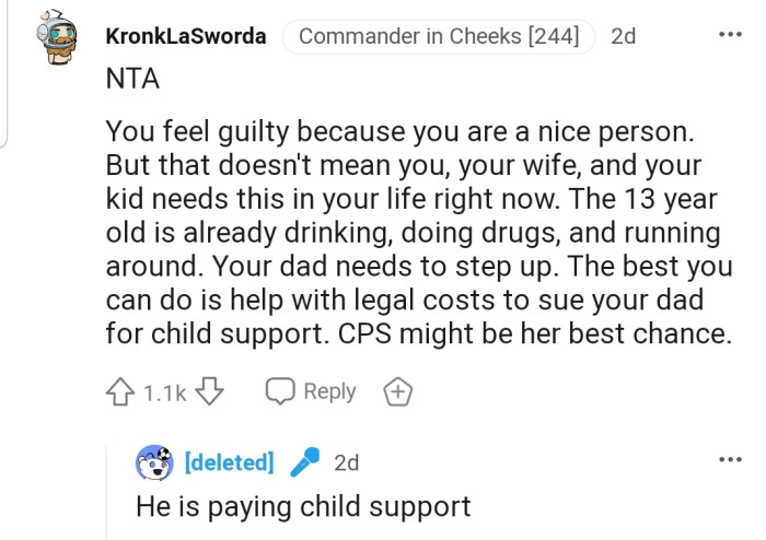 The Reddit community is solidly behind OP on this matter. Though they have admitted that it's a sad situation, everyone seems to agree that their father should step up to his responsibilities.