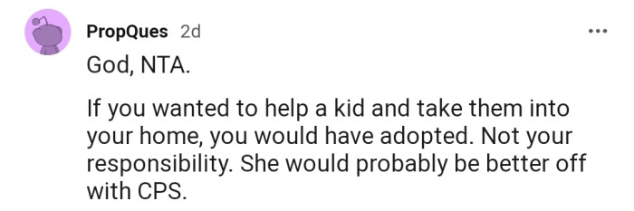 Reddit.comGrandma needs someone to take in the girl while she focuses on her chemo