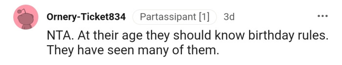 The Reddit community is livid with OP's grandparents for their decision to take the spotlight away from OP's half-sister and make the day all about them. They don't see why they would sacrifice to attend OP's birthday but decide to treat OP's half-sister differently.