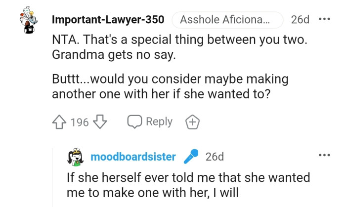 Reddit.comGrandma has been insisting, but OP is standing her ground on this one