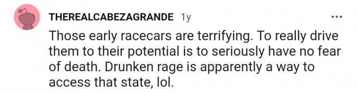 "Those early racecars are terrifying. To really drive them to their potential is to seriously have no fear of death."