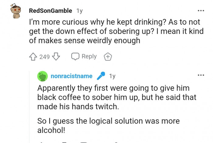 However, the commenters are in awe of Hamilton’s win despite the odds. Some even shared their findings on alcohol and how it helps boost confidence levels.