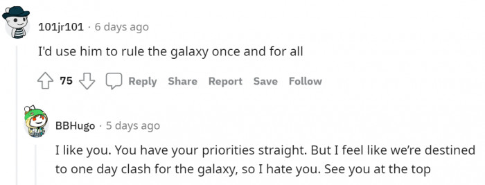 "I'd use him to rule the galaxy"