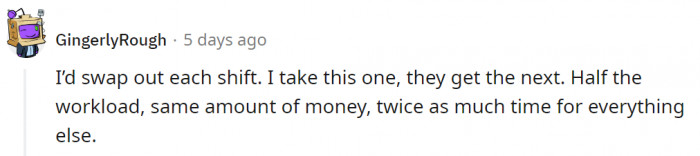 "I’d swap out each shift" - Smart move!