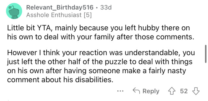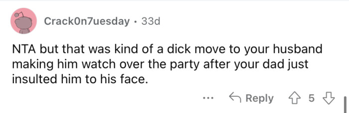 So, when Reddit user u/C_Hill1995's dad made a cruel comment about her beloved husband, understandably, she didn't take it well. The Redditor shared her story in the AITA (Am I The A**hole?) subreddit.