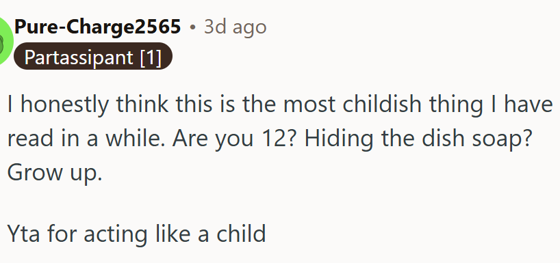 Now, OP is left questioning whether they crossed a line. Were they wrong to avoid moving the roommate’s dishes? Was hiding the dish soap unnecessarily petty?