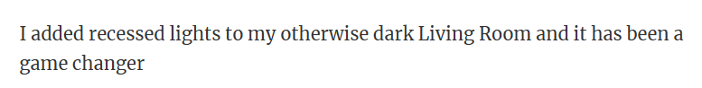 "Adding outlets to closets and cabinets so we could charge our tootbrushes, waterpiks, and vacuums in the place where we store them normally."