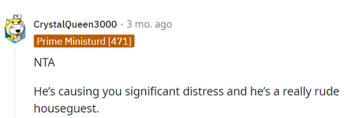 "S" is causing significant distress, and he's quite the rude houseguest.