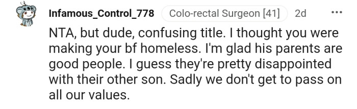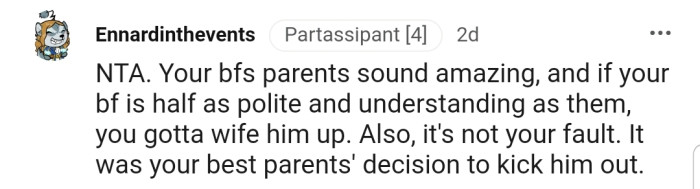 A lot of the commenters also shared their admiration for OP’s boyfriend’s parents. They believe that the couple deserve some accolades for not tolerating homophobia in their house.