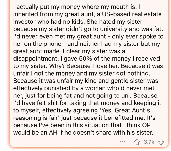 "OP would be the a-hole if he doesn't share with his sister."