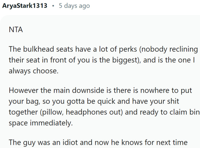 OP's story serves as a reminder that respecting fellow passengers and following flying etiquette is essential for a harmonious journey. By avoiding actions that prioritize personal convenience over shared space, travelers can ensure a more pleasant experience for everyone on board.